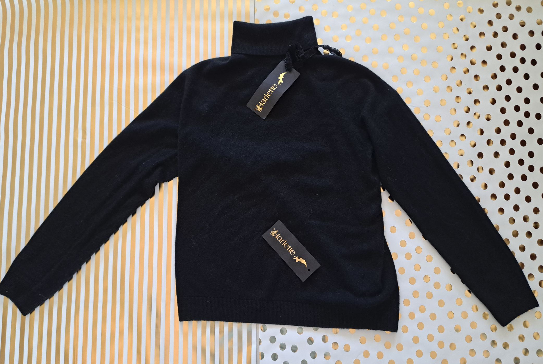 Harlette ™ began development of the Black Polo Harlette ™ Sweater in cashmere bearing the internationally trademarked Harlette ™ signature detail from the #LoveHarlette™ collection in 2019. With extensive research globally from Scotland to Mongolia. Harlette ™ are pleased to announce the long awaited Long-sleeved polo sweater in superfine cashmere knit sourced from the finest international luxury suppliers of cashmere.